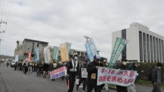 「今日の集会から新たな闘いが始まる」久留里線の会・三浦代表が檄!弁天公園での集会後、「久留里線の廃線を許さないぞ!」の声を響かせて君津市役所に向けてデモ行進。3月16日、久留里線と地域を守る会は、君津市・弁天公園において、「久留里線の存続を...
