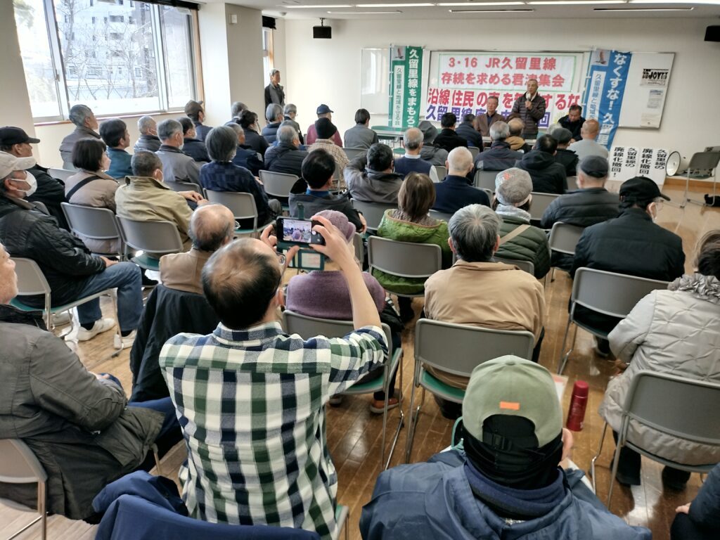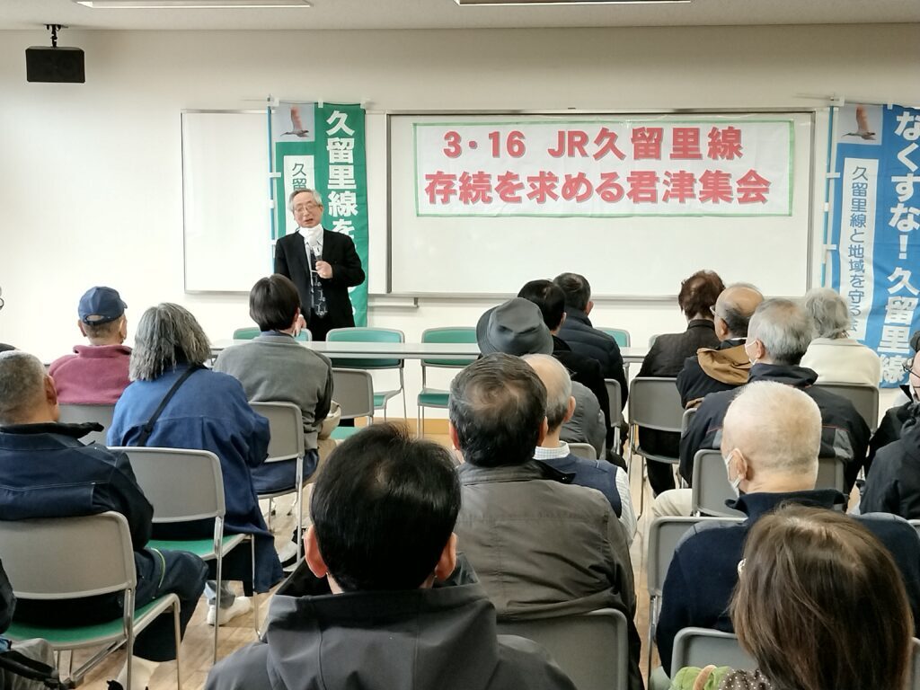 3月16日、久留里線と地域を守る会は、君津市・弁天公園において、「久留里線の存続を求める3・16君津集会」を開催し、JR東日本が久留里線・久留里~上総亀山間の廃線届の申請を行ったことに対して徹底的に抗議し、あくまでも申請の撤回と久留里線の存続を求めて闘い続けることを訴えた。